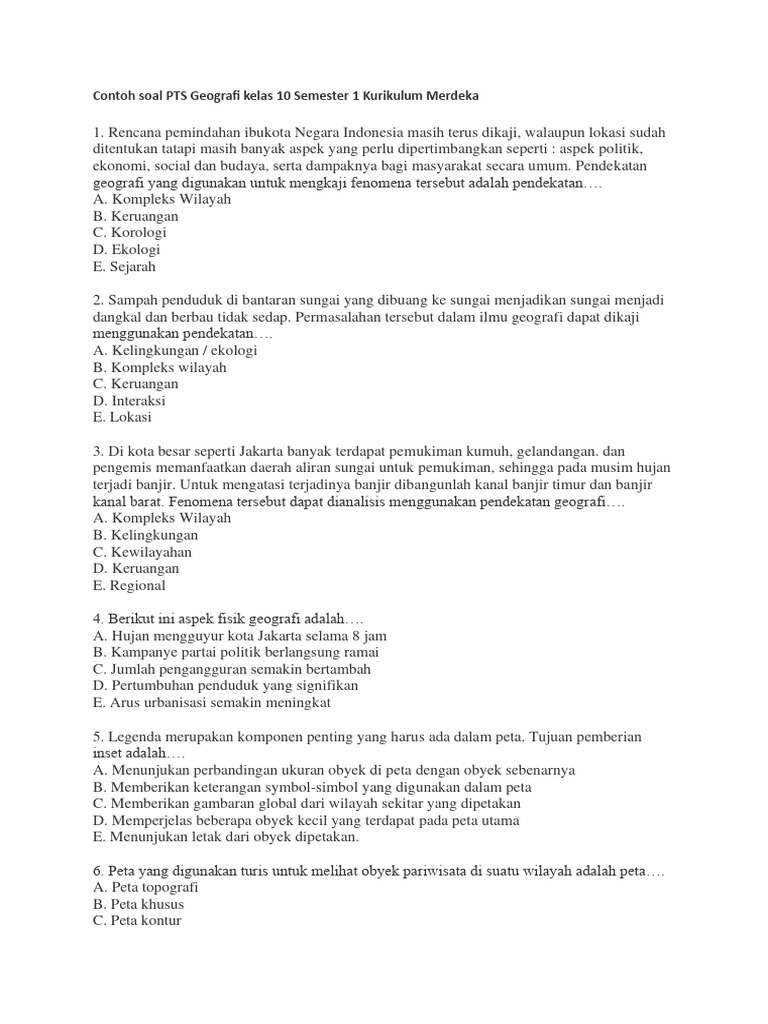 Soal-soal Geografi Kelas 10 Semester 1 Bab 4 dapat dikategorikan menjadi beberapa tipe. Dengan strategi yang tepat, Anda dapat menjawabnya dengan percaya diri.